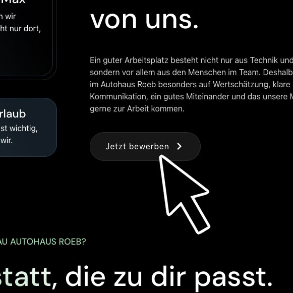 Ein guter Arbeitsplatz besteht nicht nur aus Technik und Werkzeug – sondern vor allem aus den Menschen im Team. Deshalb achten wir im Autohaus Roeb besonders auf Wertschätzung, klare Kommunikation, ein gutes Miteinander und das unsere Mitarbeiter gerne zur Arbeit kommen.
