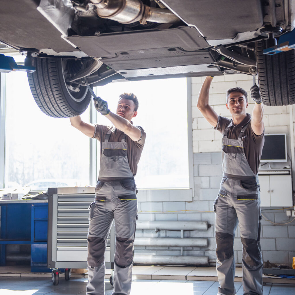Wartung und Inspektion von Fahrzeugen verschiedener Marken und Modelle.